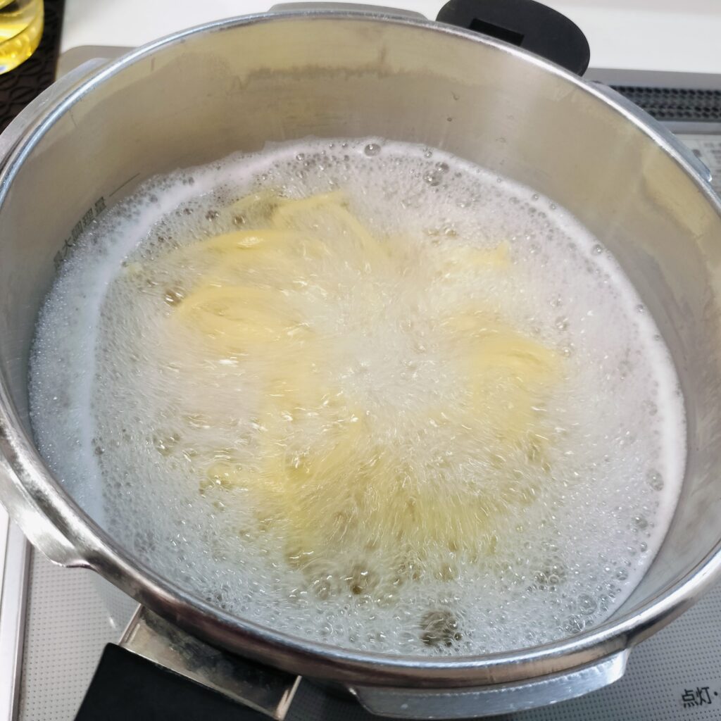 たっぷりなお湯で 指定時間 +2分ほど茹でます。