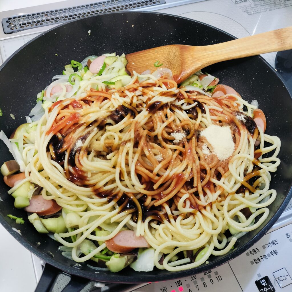 麺に焦げ色がつく直前ぐらいまで炒めるのが美味しく仕上げるコツです。
