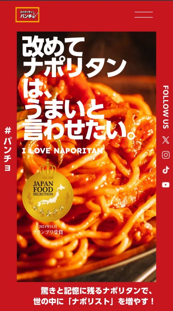 今まで食べたナポリタンの中で一番美味しいと思ったスパゲティ専門店パンチョのナポリタンです。
