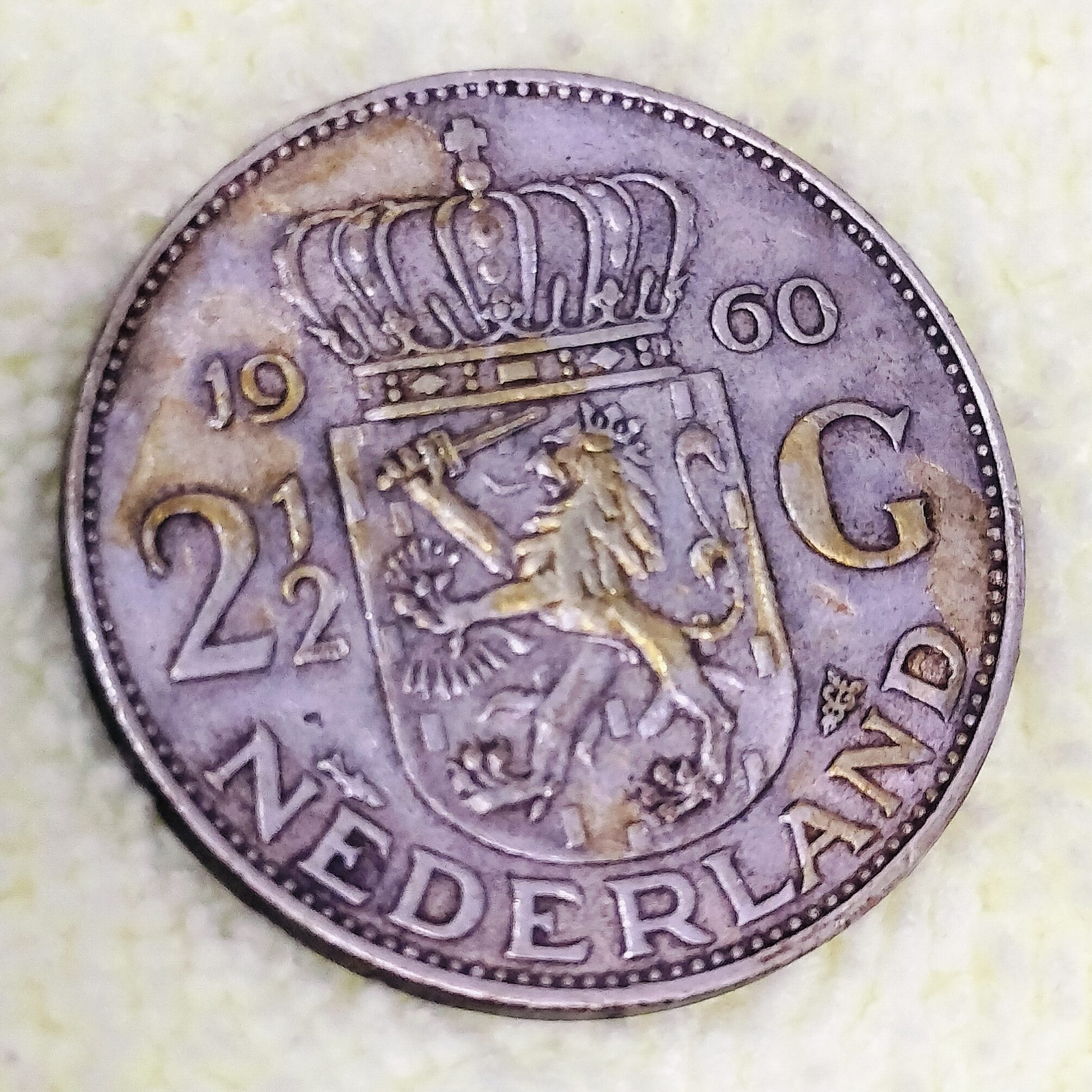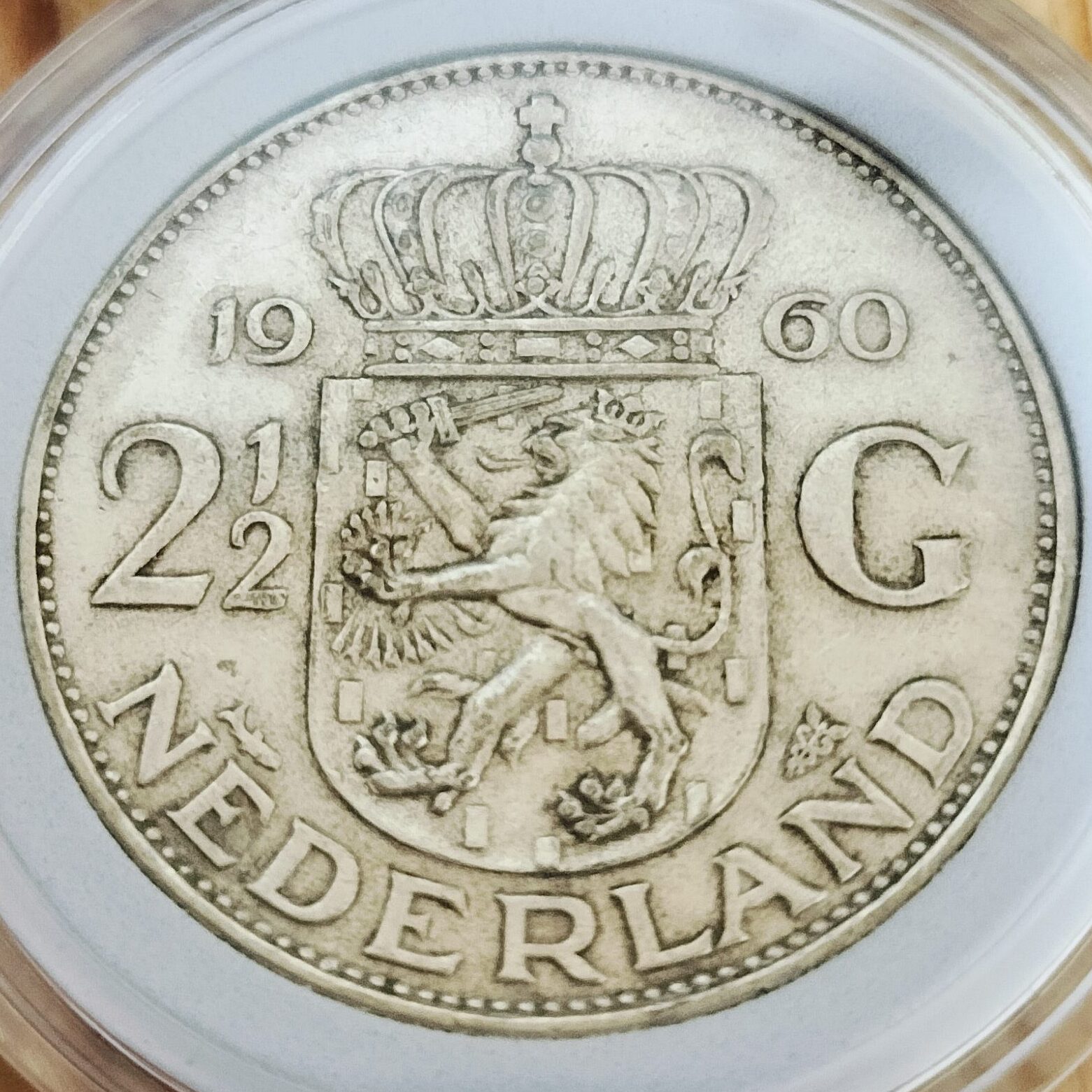 中身は 1960年 オランダ ユリアナ女王が描かれた 2.5 ギルダー銀貨です。