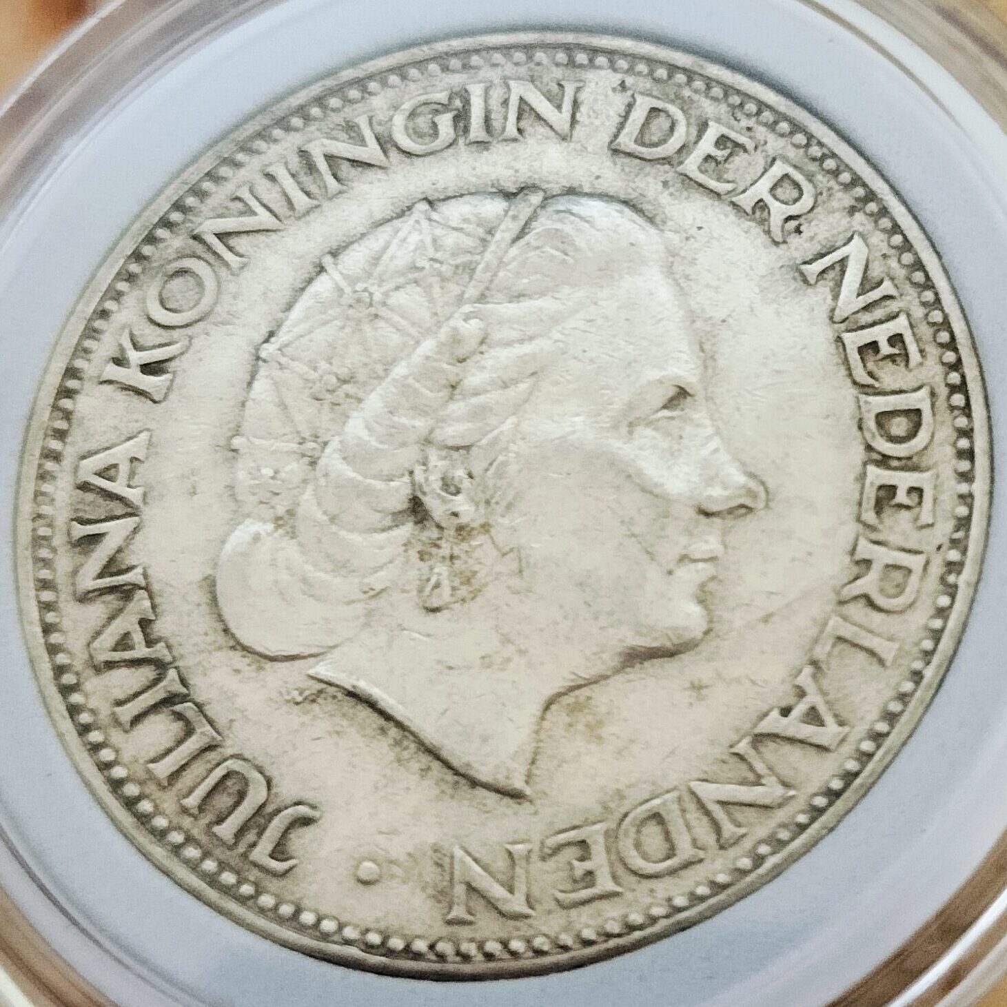 このコインは、女王ユリアナの穏やかな治世と、戦後復興で活気づく1960年代オランダの空気感をよく物語る歴史的アイテムです。