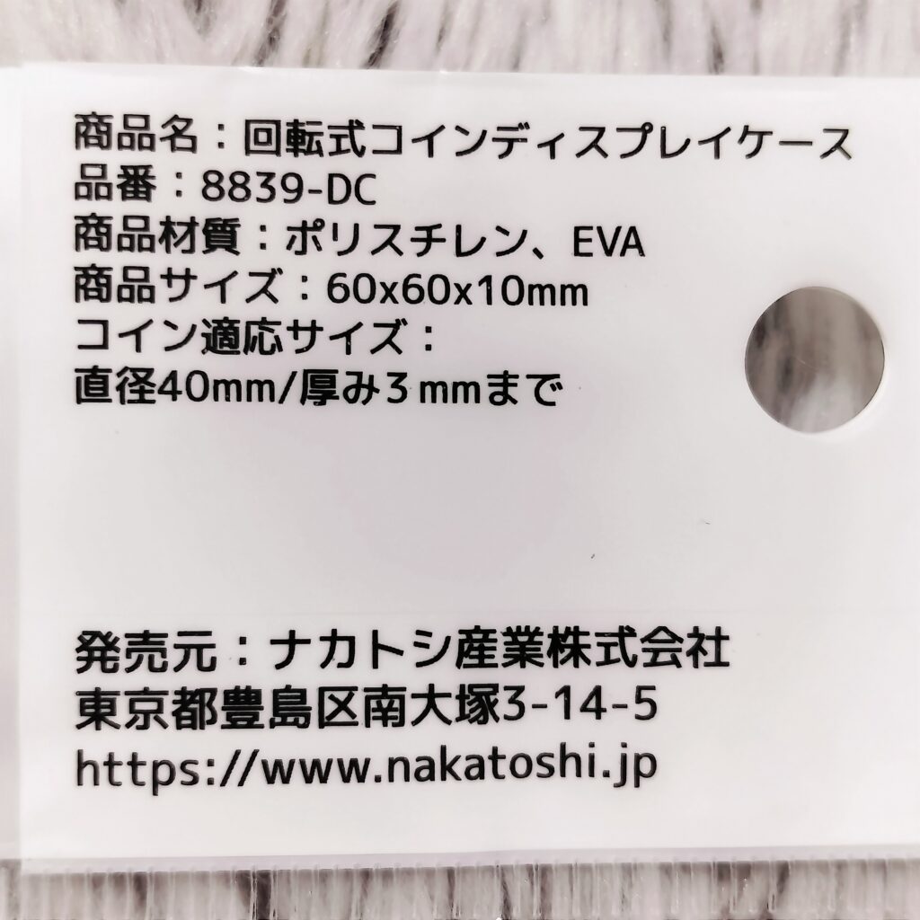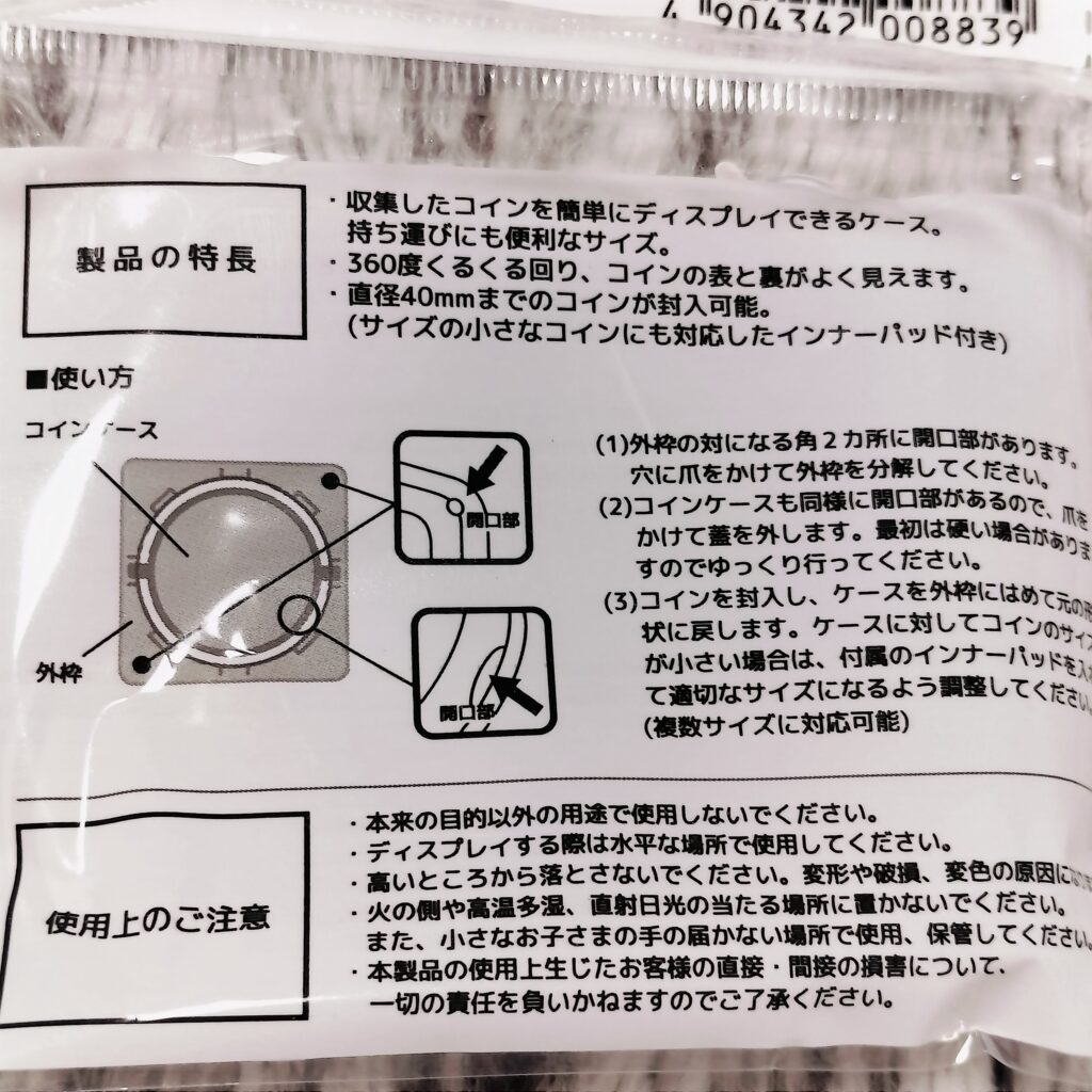 直径40ミリ、厚み3mmまでのコインがディスプレイできます。
