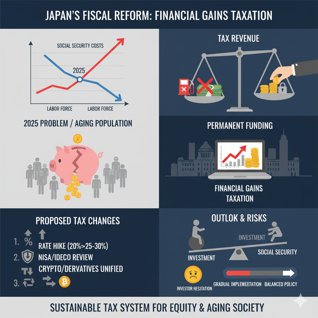 2025年以降の金融所得課税強化は、単なる増税ではなく「社会保障財源の恒久確保」と「税制の公平化」を目的とした構造転換の一環となる。