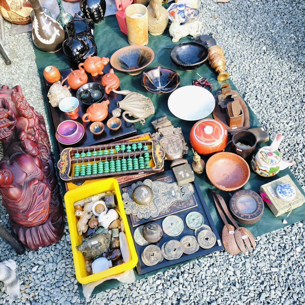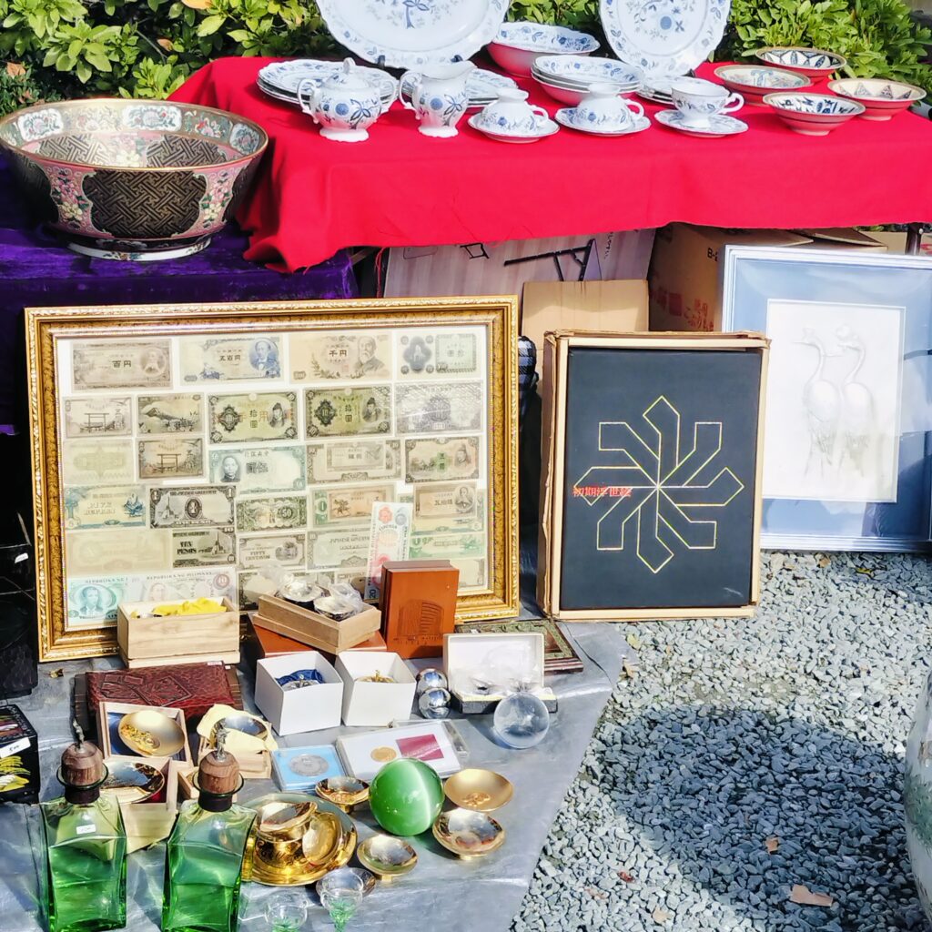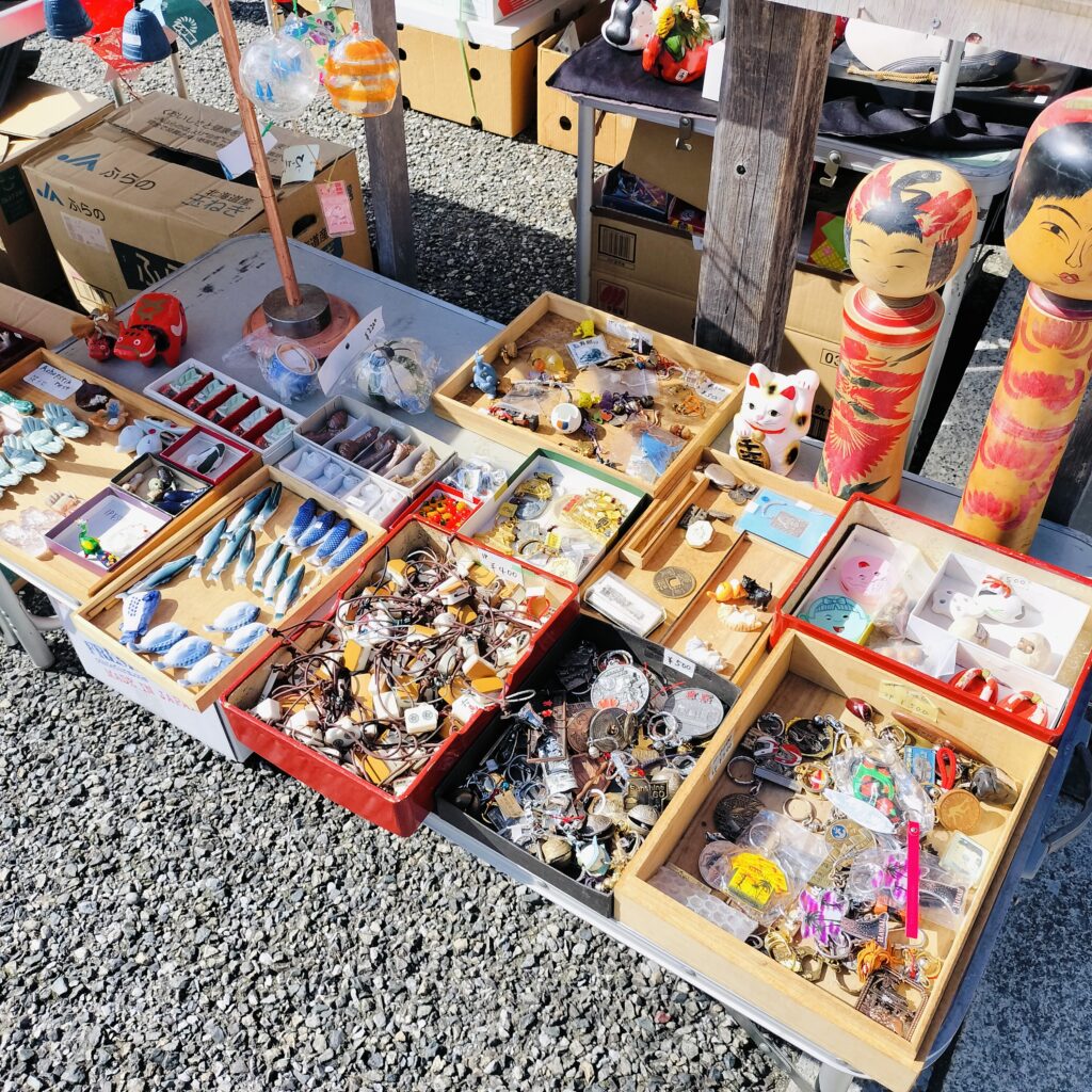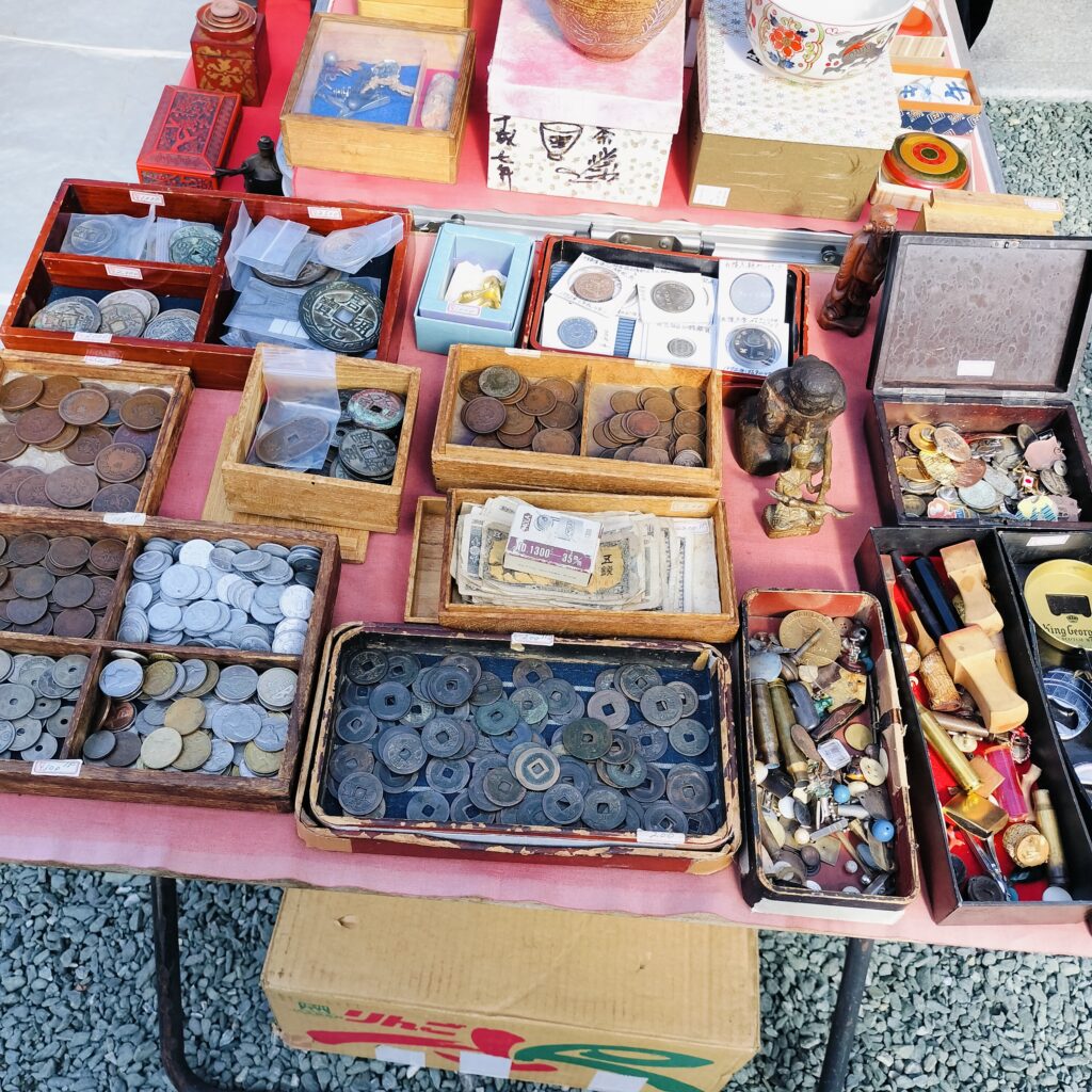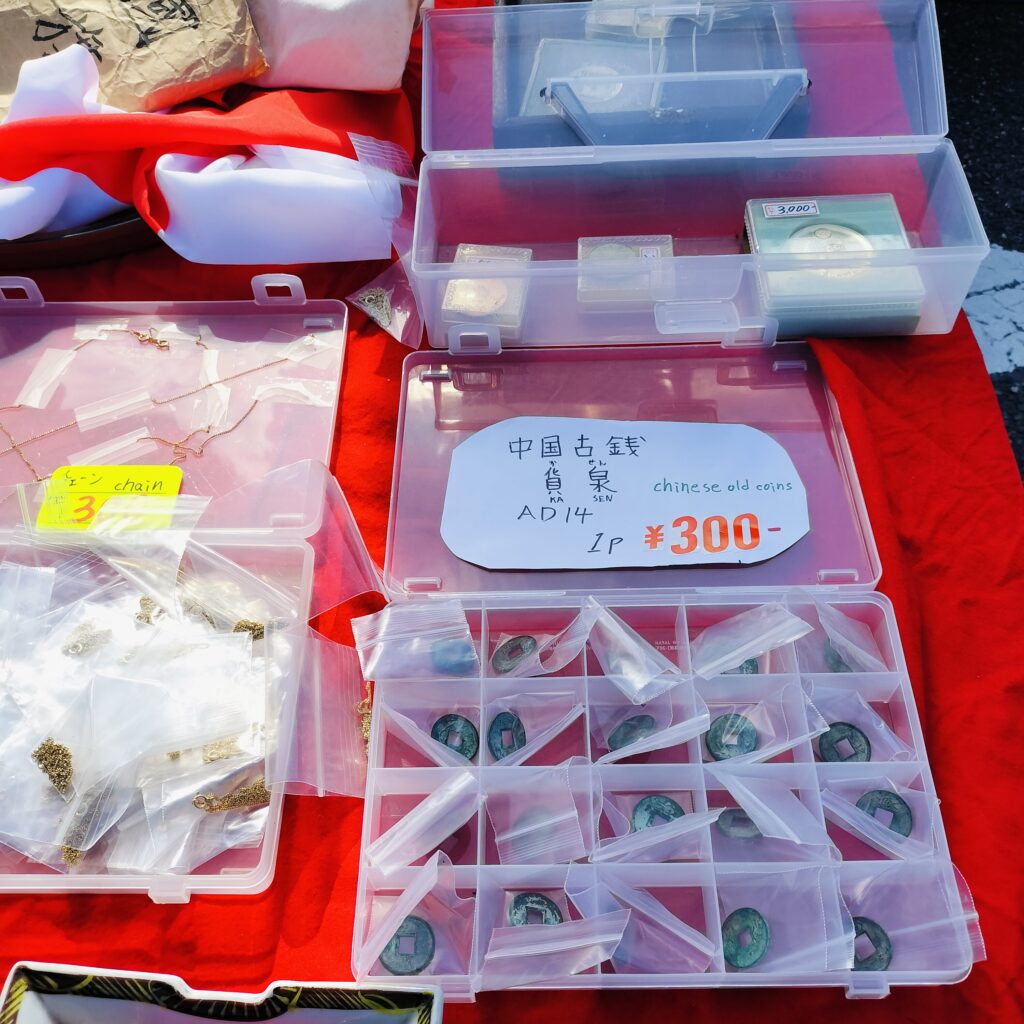 歴史のあるこの市は、古物や骨董品、古民具、着物、古銭、海外アンティーク品など、多彩な商品が約100店舗以上にわたり所狭しと並び、多くの人々が訪れます。