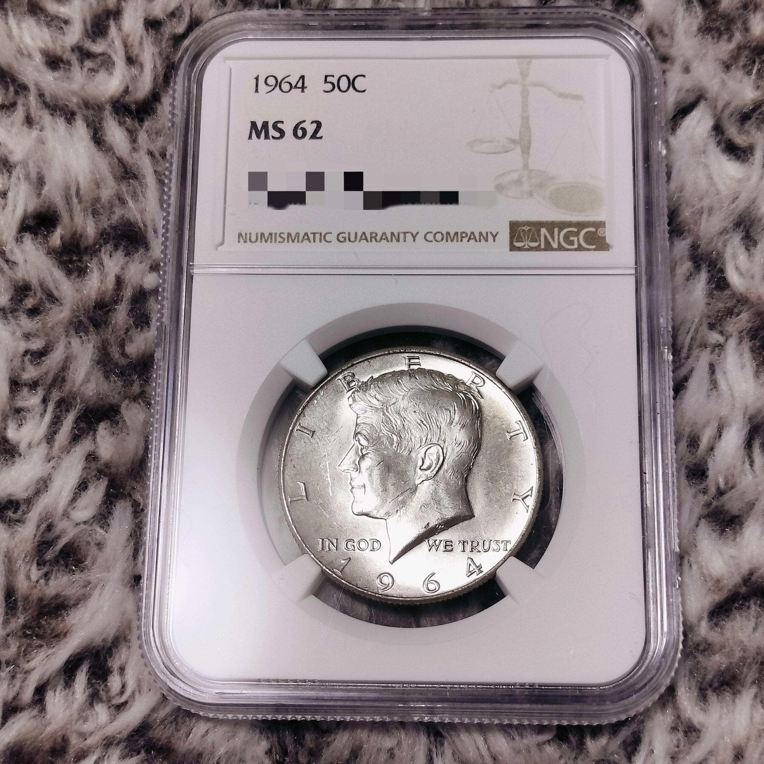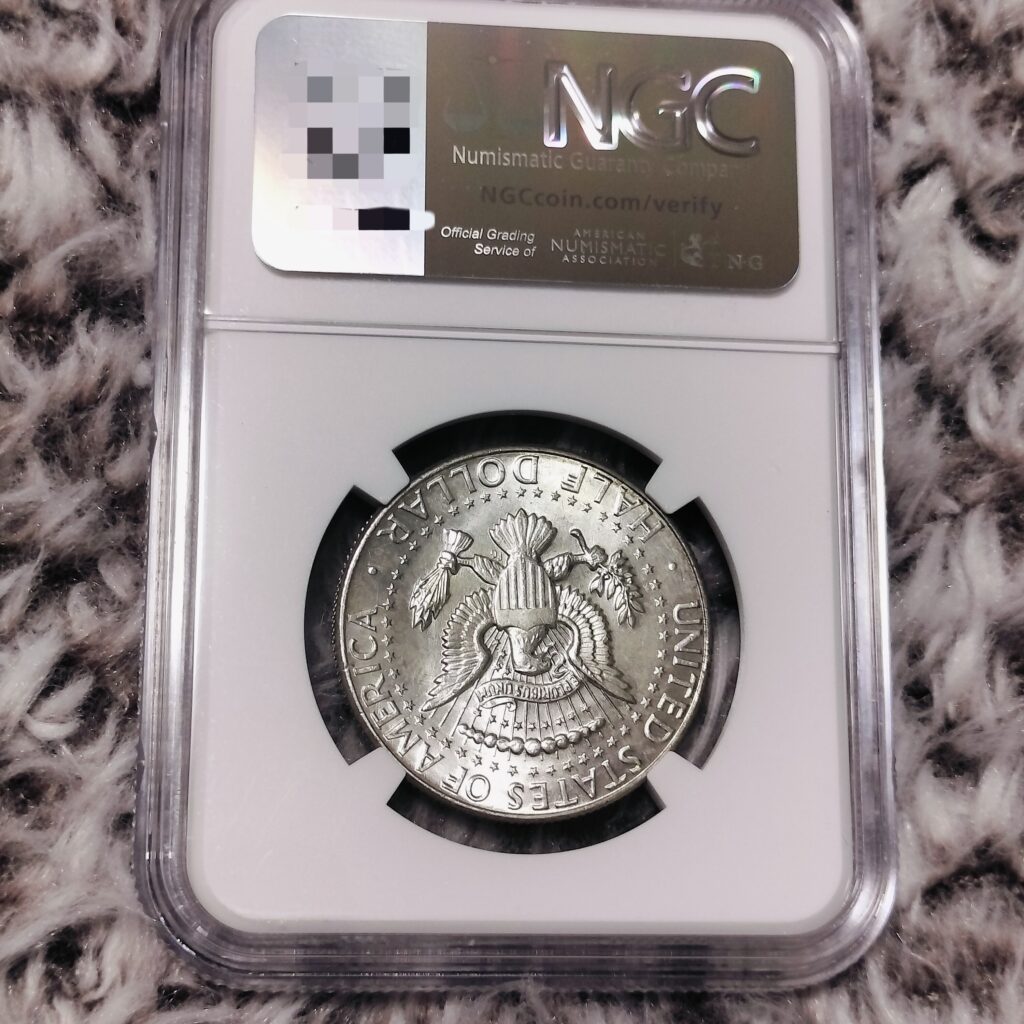 この年のケネディ・ハーフダラーは、アメリカ合衆国で“最後の90%銀含有流通貨”でもあり、翌年1965年の貨幣法改正により、銀含有量は40%へ引き下げ、1971年以降は通常流通分から銀含有が完全に消滅しました。