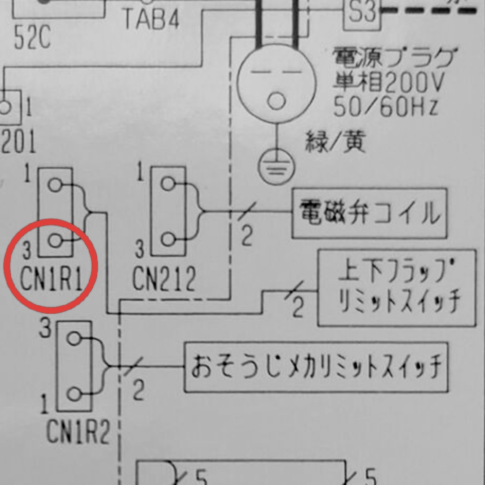 上下 フラップリミットスイッチのコネクターはCN1R1だそうです。