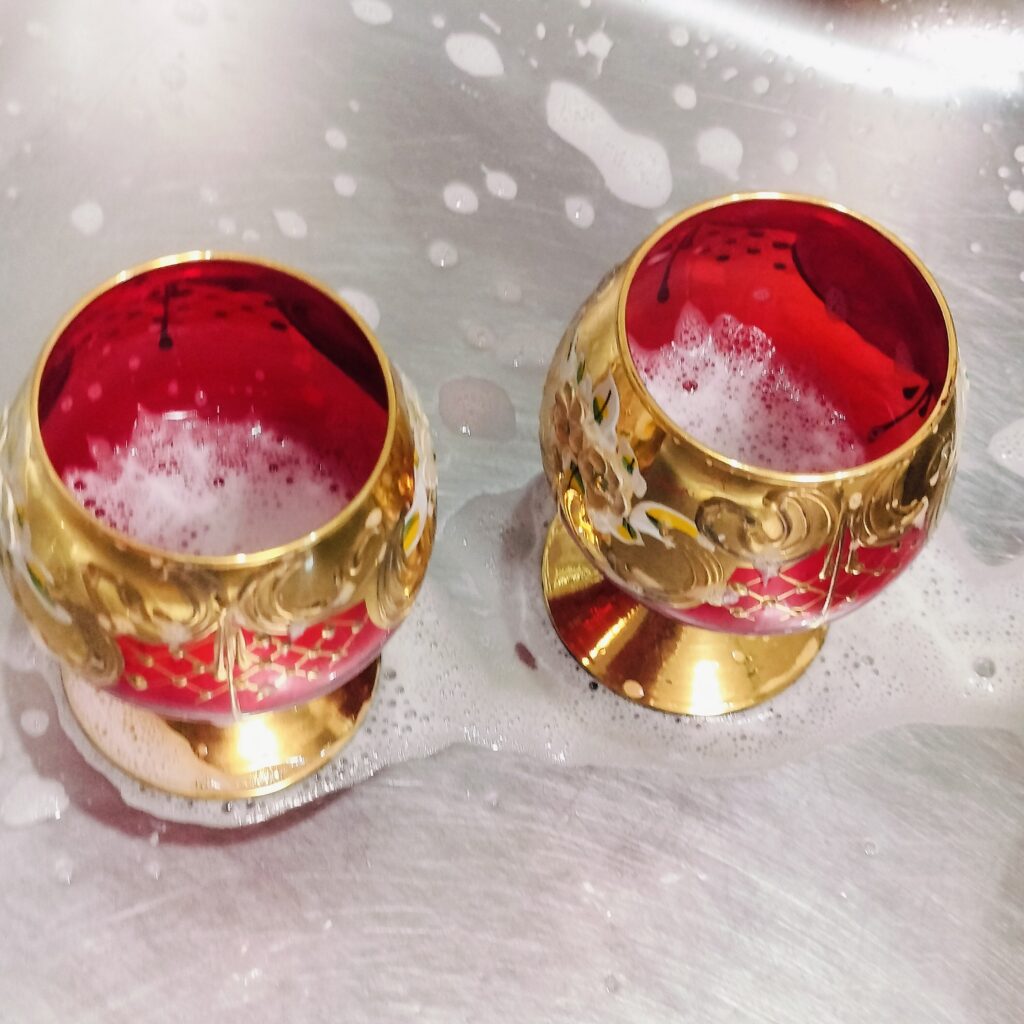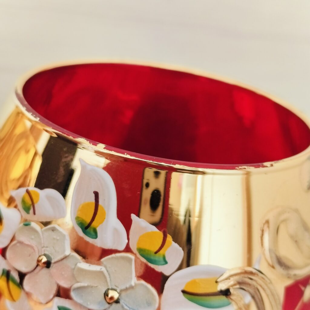 ベネチアングラスの鮮やかなルビーレッドは、製造過程で金を原料に加えることで生まれます。