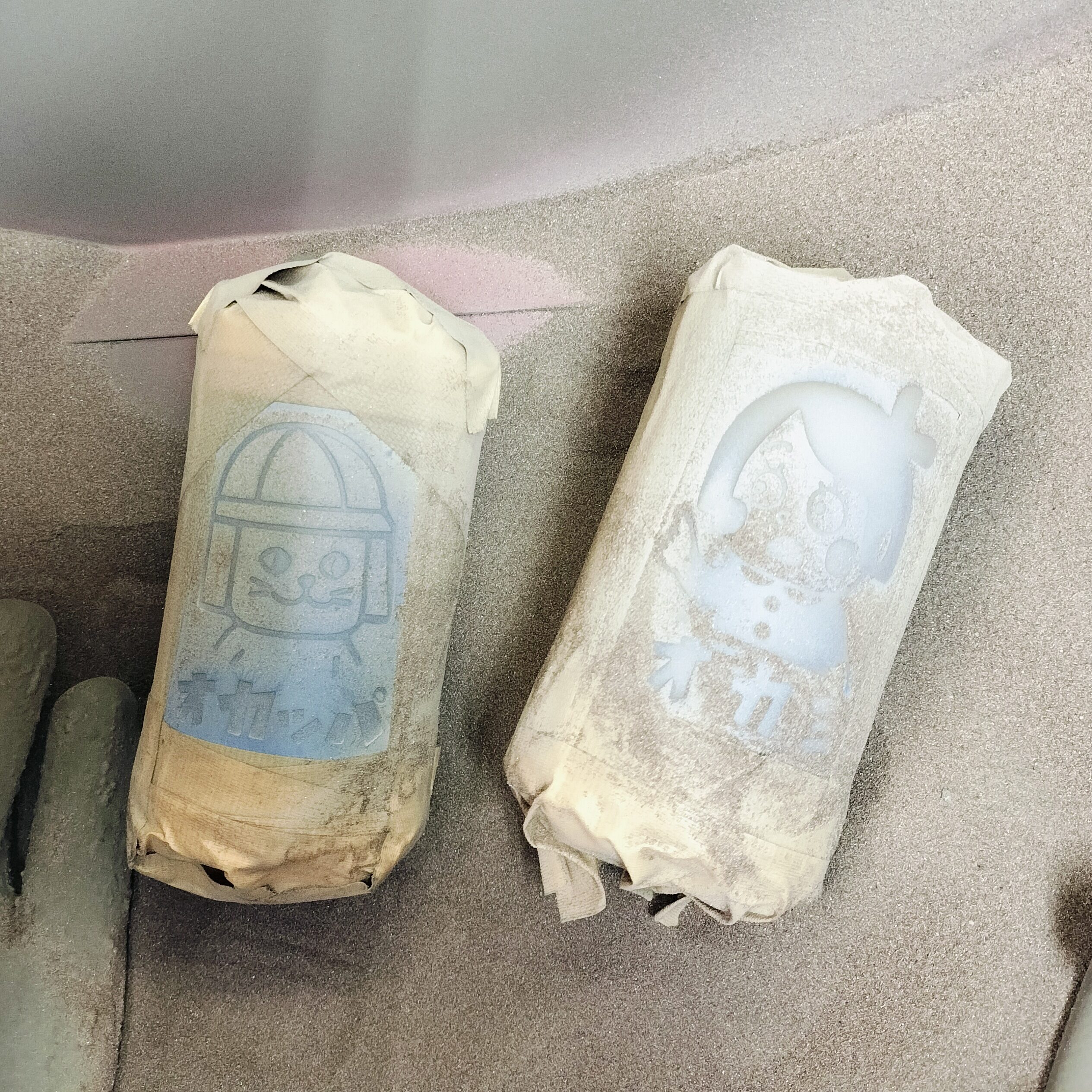 エアーでブラストメディアを吹き飛ばし、斑が無いかよくチェックします。