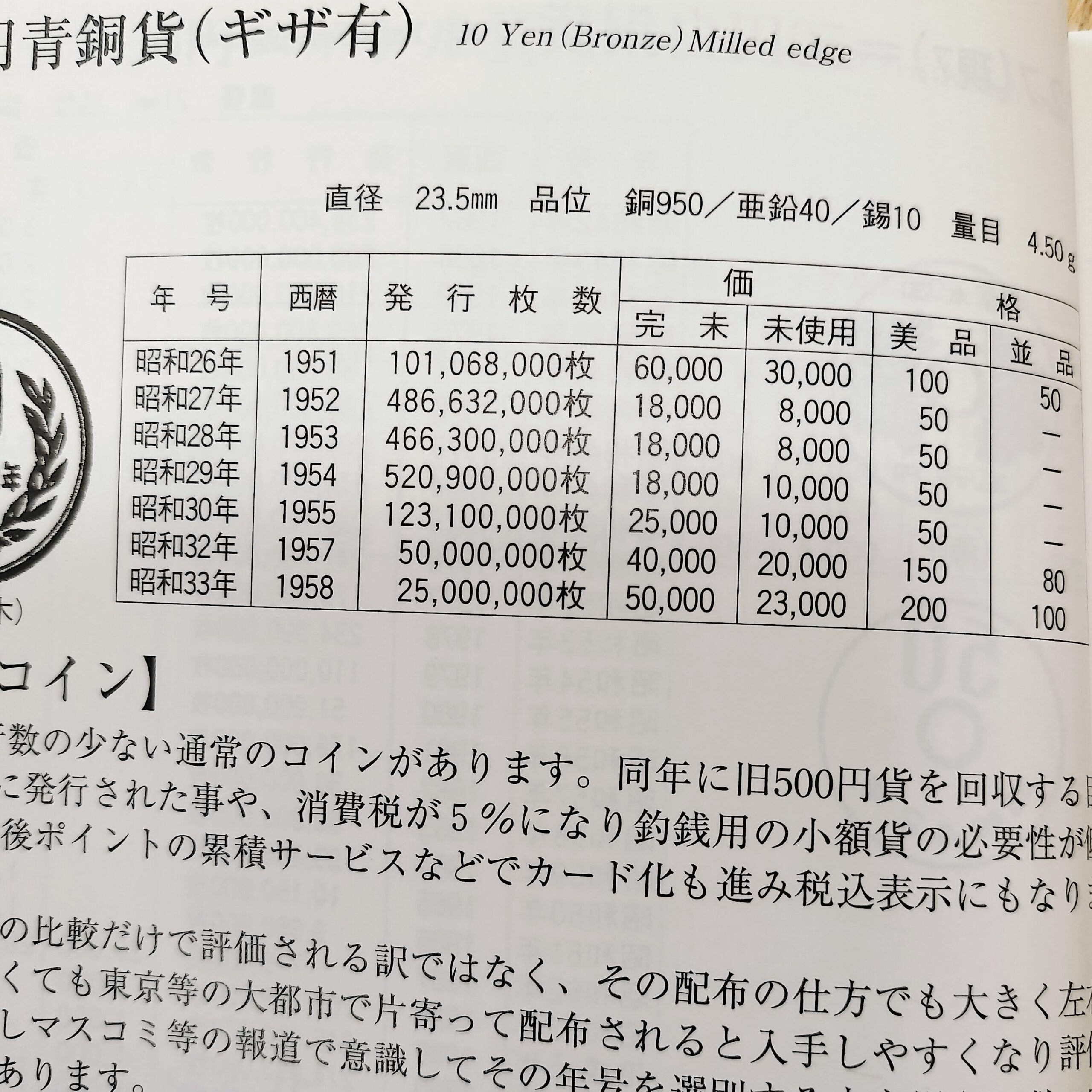 発行枚数的に、最も価値の高いギザ10は昭和33年製で ついで 32年製、26年製と続きます。