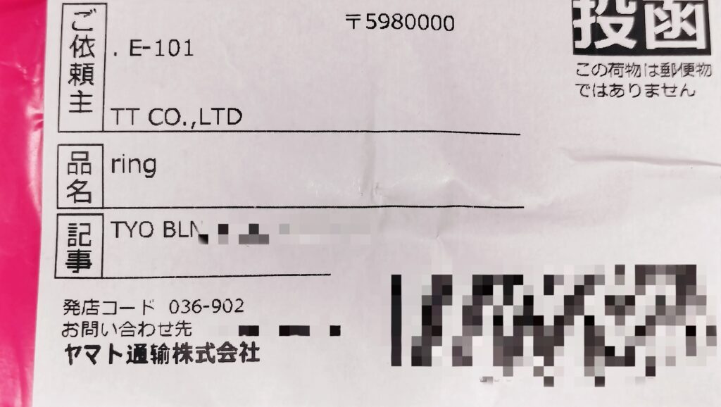 ヤマト運輸のネコポスですが、全く身に覚えのない荷物です。