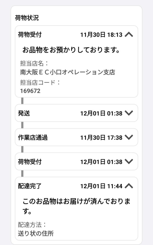 荷物の受付は、『南大阪ec小口オペレーション支店』ですね。