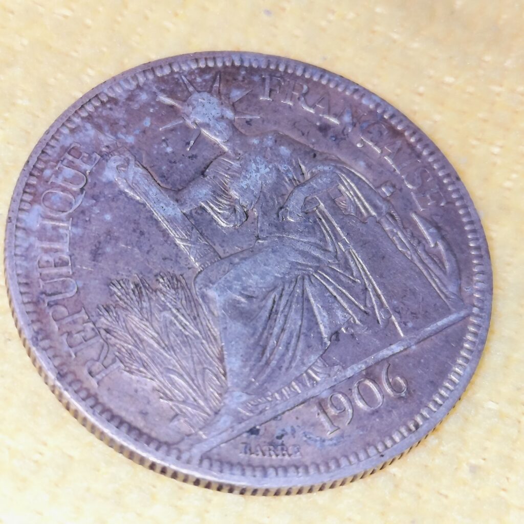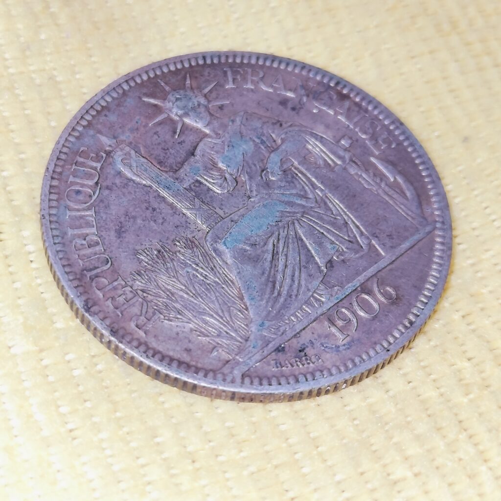 中身は1906年フランス領インドシナの1ピヤストル・ド・コメルス(Piastre de Commerce / 貿易銀)です。
