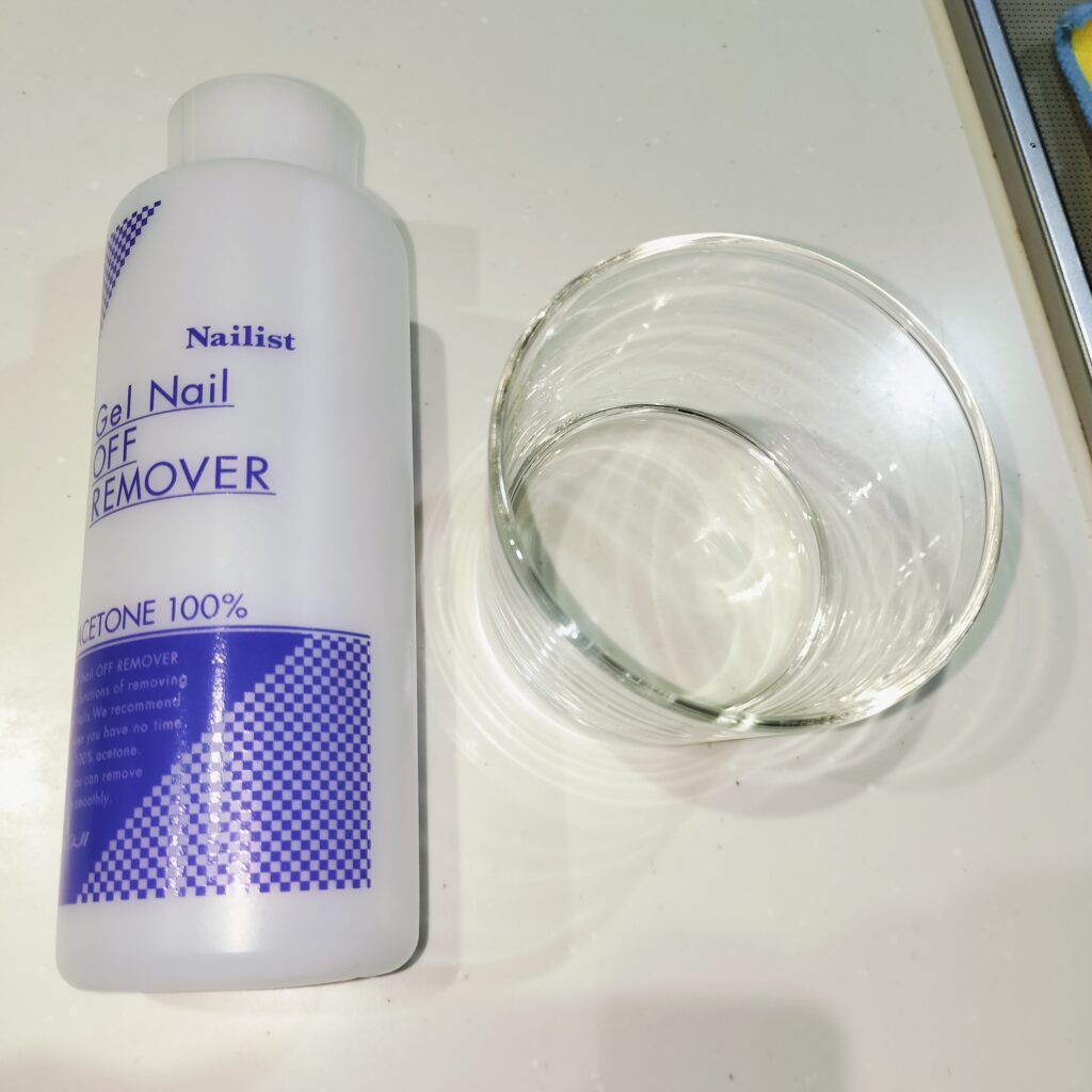 アセトンで漬け置きします。