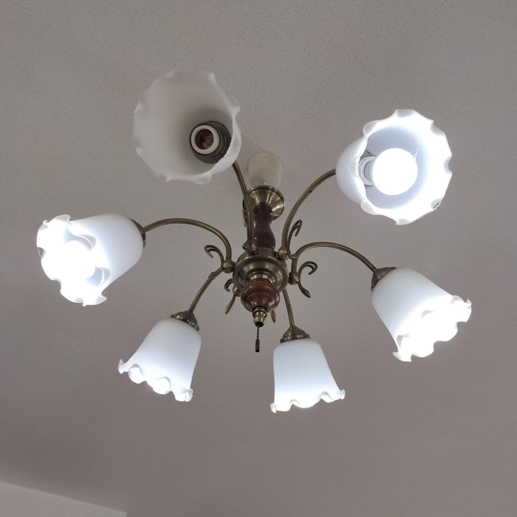 シャンデリアタイプのやつで、以前住んでいた家の時から通算でもう15年ほど使っています。