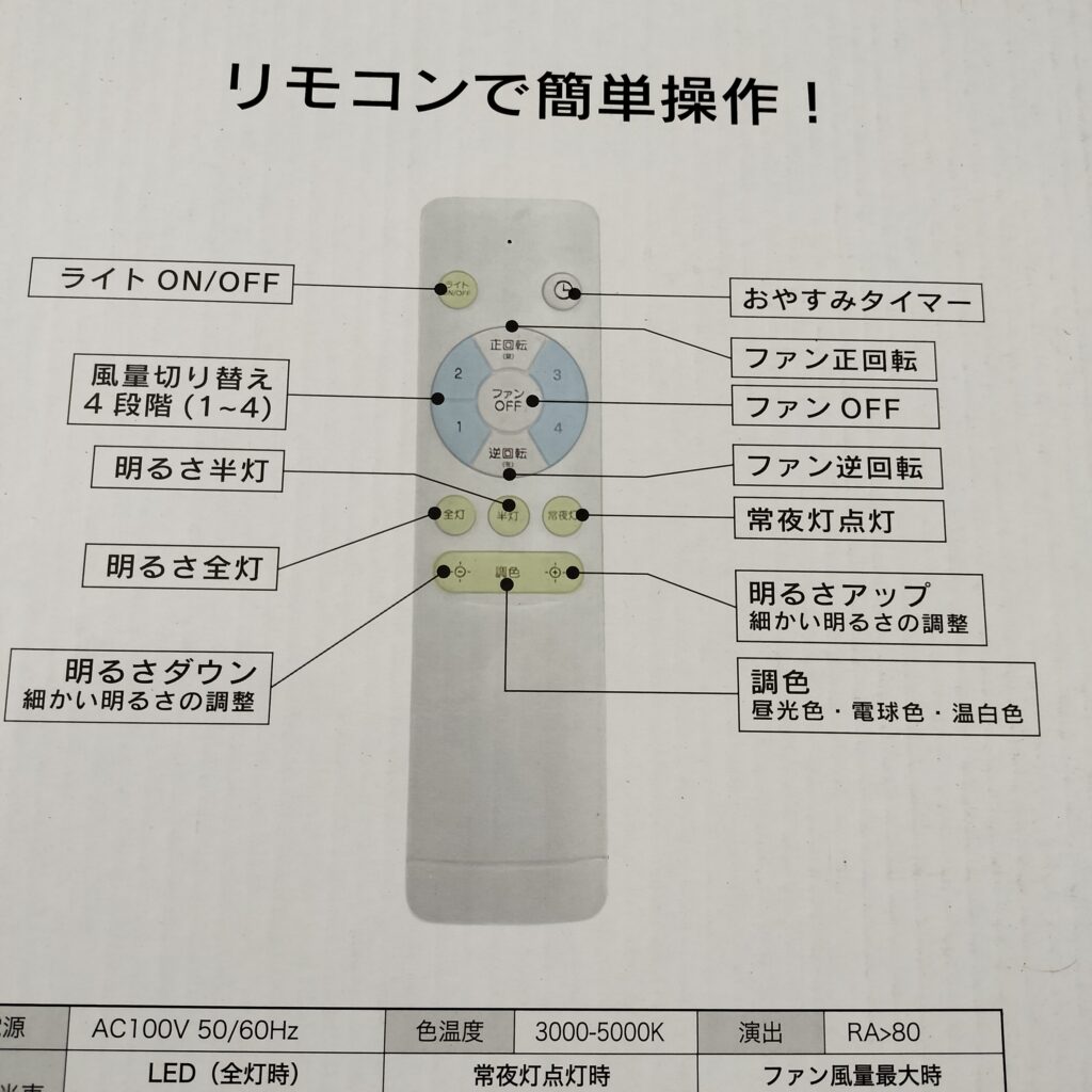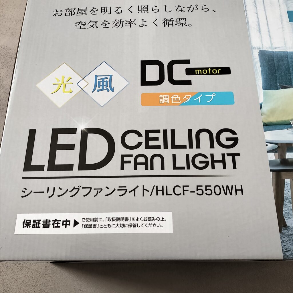 先日、青森の地震発生時のニュースで、部屋のシャンデリアがすごく揺れている映像が流れていて、家族の安全も考えて 以前から欲しかったシーリングファンライトに交換することにしました。