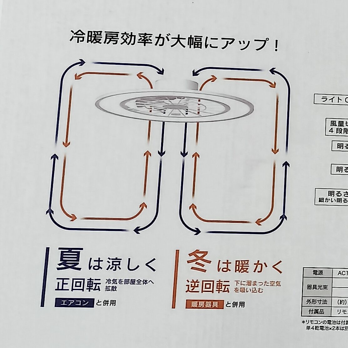 夏と冬ではファンの回転方向を変えるようです。