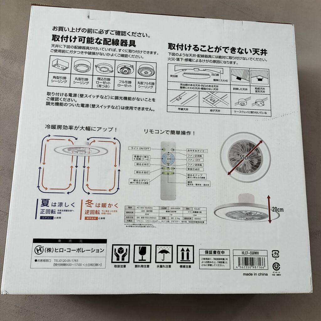 ヒロコーポレーション シーリングファンライト HLCF-550WH ホワイトです。