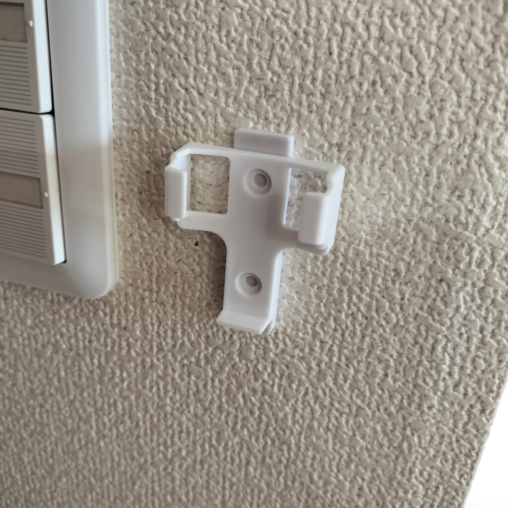 リモコンホルダーを両面テープで壁に留めて