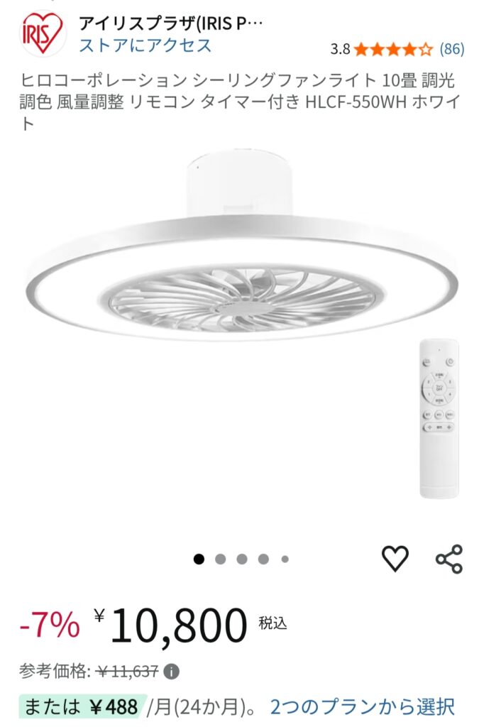 シーリングファン付きライト、おすすめです😇