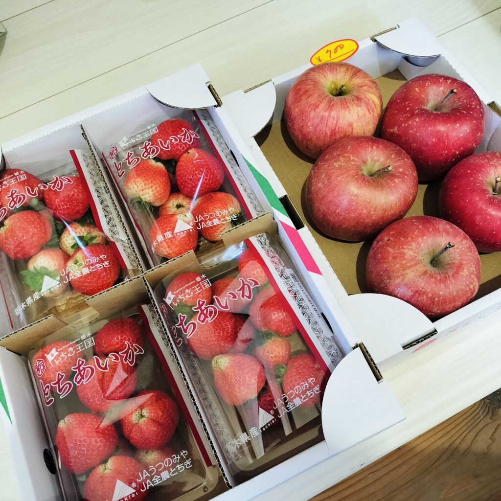 娘が好きな りんごと苺も買いました。セットで2000円にしてもらいました。