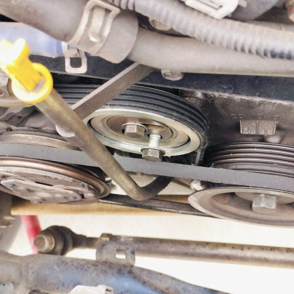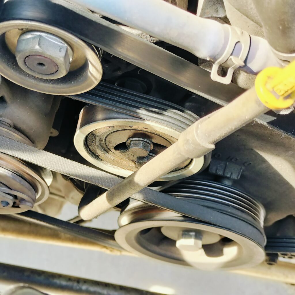 このプーリーのベルトは、オルタネーターとウォーターポンプを回しているので、不具合があると走行不能や最悪はエンジンブロー にもなりかねないので交換することにします。