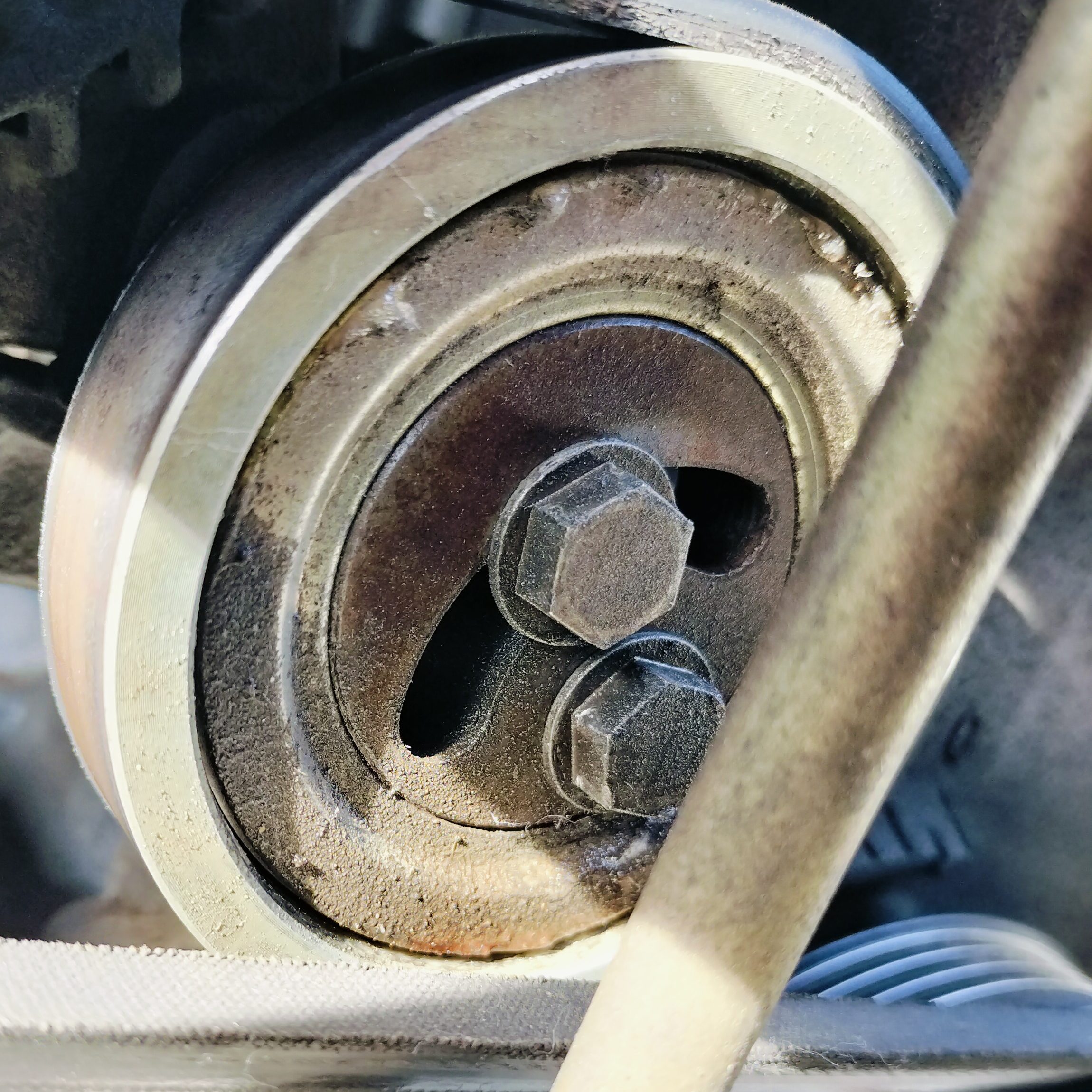 2本の12のボルトを外して、テンショナープーリーを取り外しました。