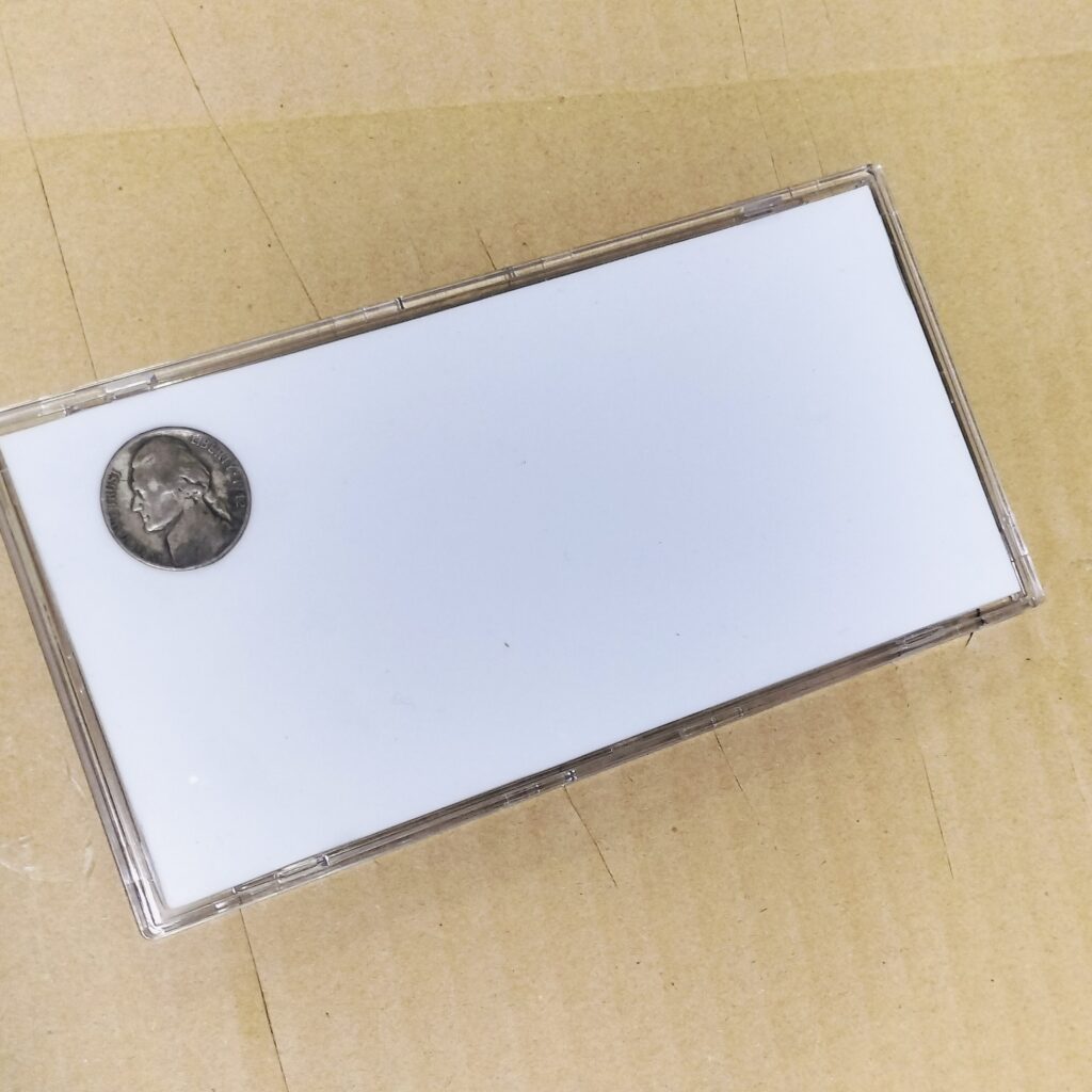 くり抜いた穴にコインを挟み込み、