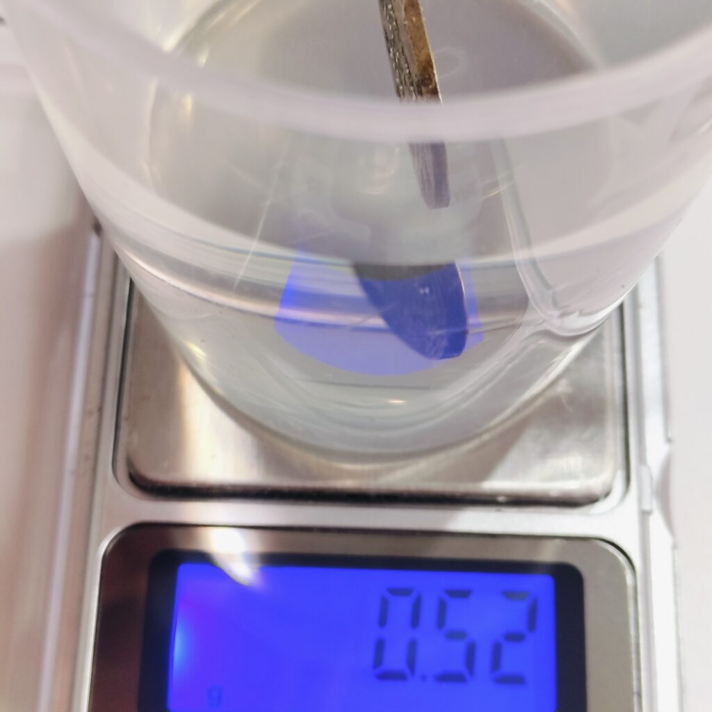 水中での重量は0.52g です。