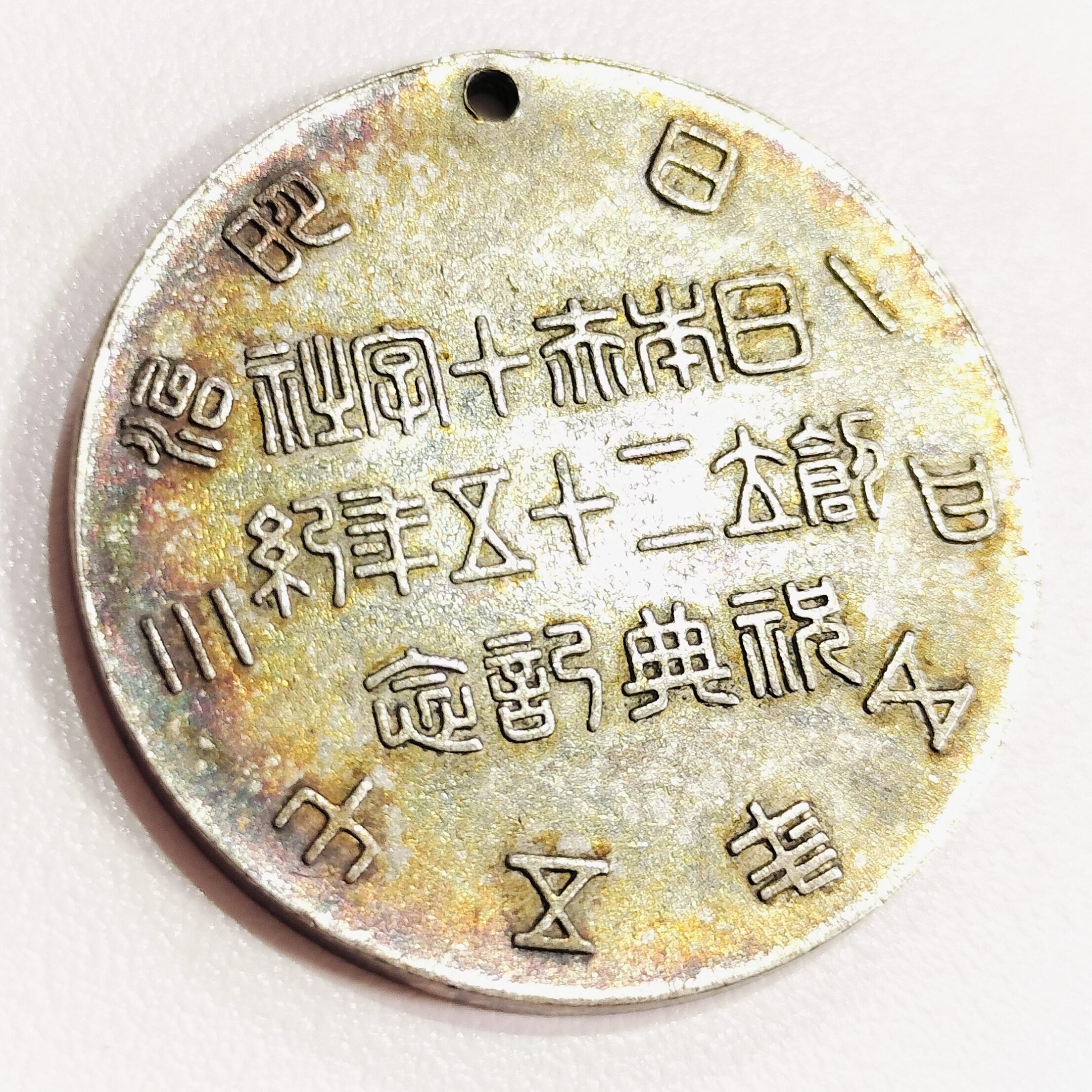 このメダルは、明治35年(1902年)に開催された「日本赤十字社創立25年祝典」に際して発行されたもので、極めて公的な性質を持つ品です。