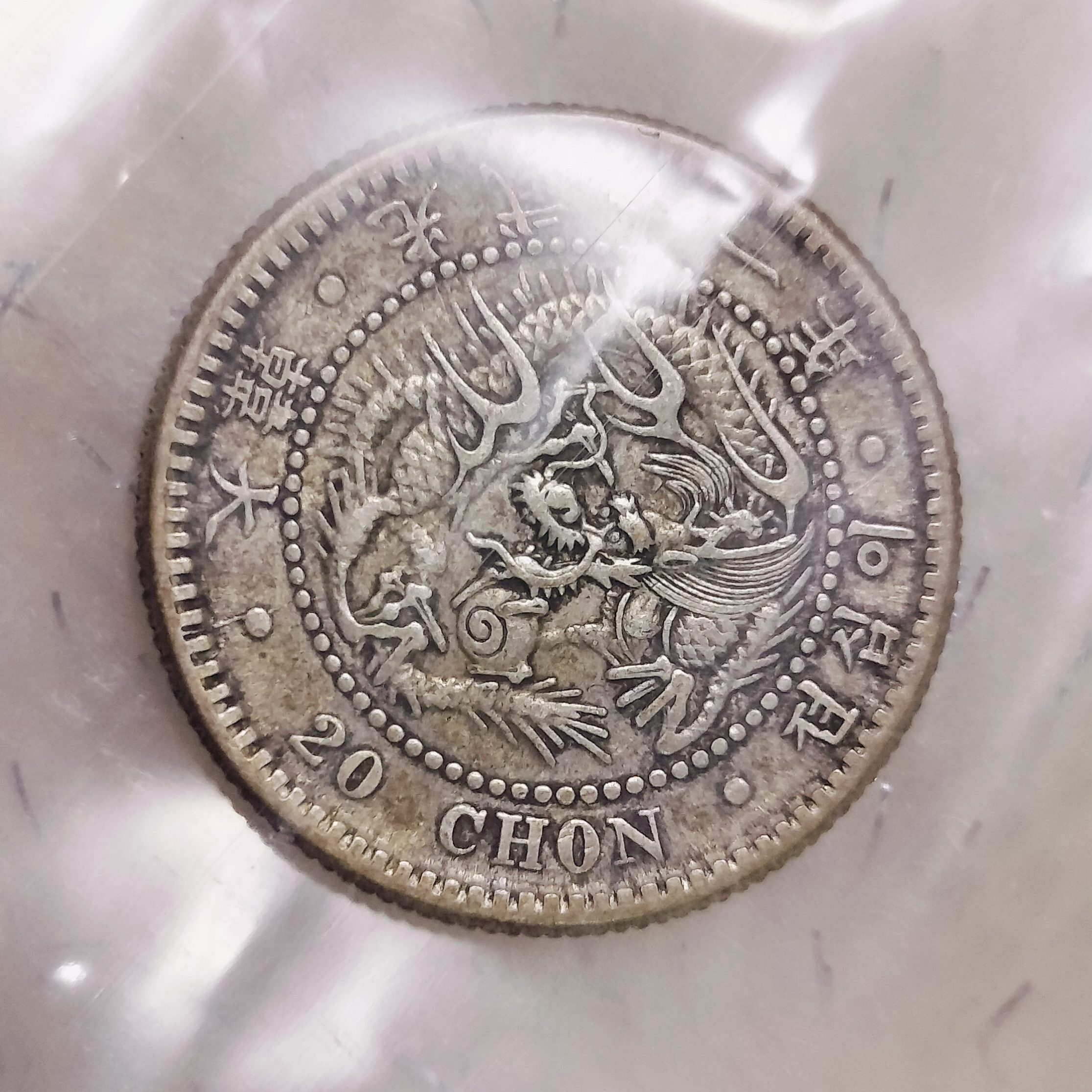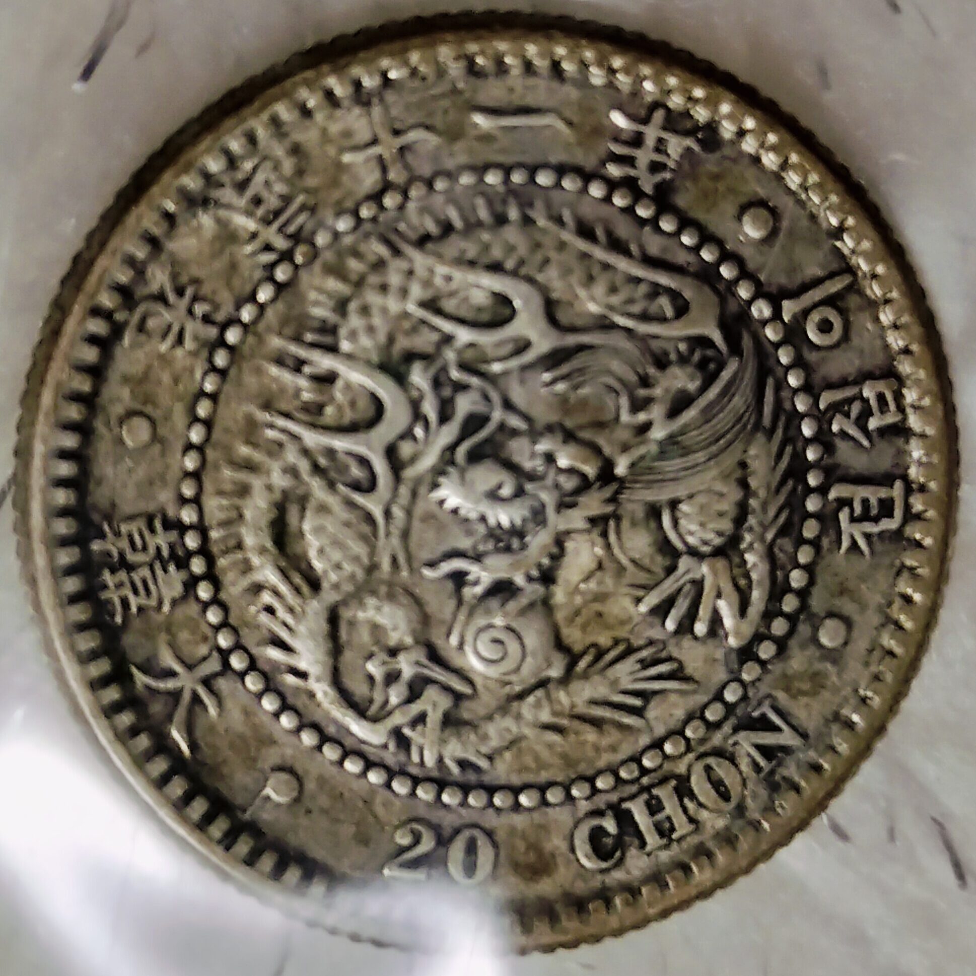 しかし、この大韓帝国の小型20銭銀貨は、サイズこそ日本の旭日20銭と同じでありながら、中央には依然として猛々しい「竜」の図案が鎮座しています。
