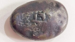 以前、催事で手に入れた豆板銀です。その頃は この黒い塊は何なのか よくわからなくて保管しておりました😅いい機会ですから色々と検証してみましょう💪まずは外観観察からです。かろうじて『政』の字が確認されます。【参考】安政豆板銀色々と調べたら文政...